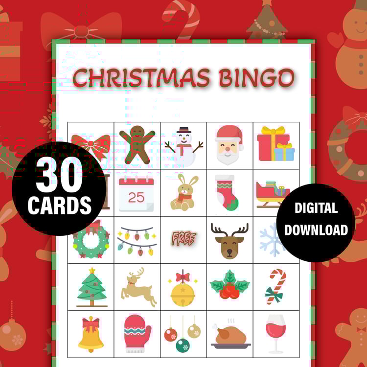 Christmas Bingo Game for Parties, Classrooms